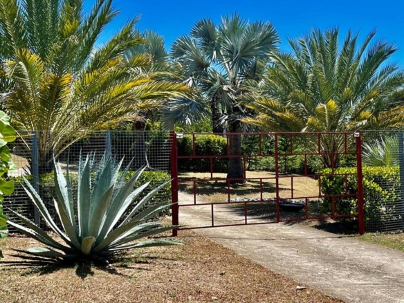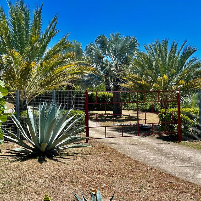 Set on over two acres of beautifully landscaped grounds, the property is a botanical paradise cultivated over decades by its current owners — both expert landscapers. From the moment you pass through the gated entrance, you're transported into an extraordinary world rarely found elsewhere. The gently curving driveway winds through majestic elephant-sized boulders, rare tropical plants, stately palms, and fruit-bearing trees.