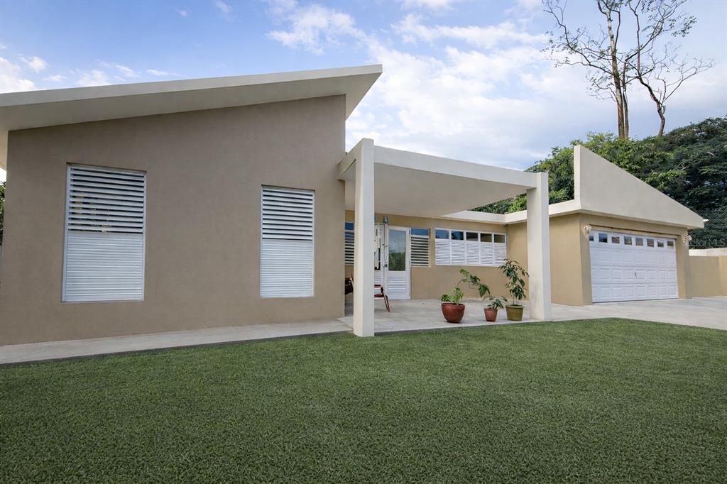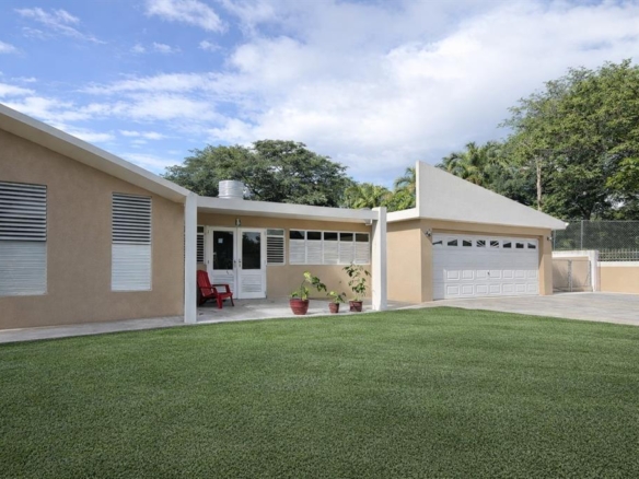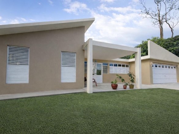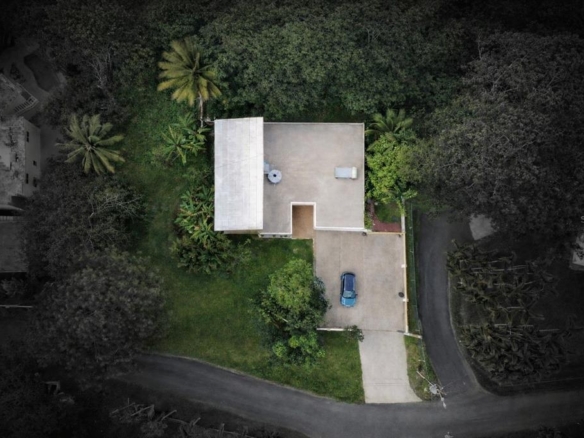 The property spans approximately 1.15 acres, with open land surrounding the home and a natural body of water positioned below the property line. The elevation provides a clear vantage point and a feeling of distance from neighboring structures, while remaining comfortably accessible to Guaynabo and Caguas.