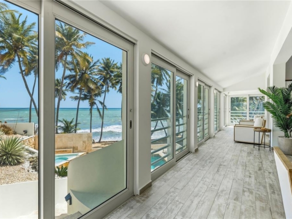 Set along one of Palmas del Mar’s most coveted stretches of coastline, 32 Shell Castle presents a rare opportunity to own a refined oceanfront retreat where contemporary design meets the effortless rhythm of Caribbean living. Positioned directly above the shoreline and framed by a row of swaying palms, the residence captures uninterrupted views of the turquoise waters and the ever-changing horizon beyond. Boasting approximately 5,500 square feet of interior living space on 0.26 acres, the residence is thoughtfully arranged across three levels, offering five bedrooms, each positioned to capture sweeping ocean views and five full baths plus a powder room. The primary suite offers a particularly peaceful retreat, opening to its own terrace where mornings begin with the sound of waves and the scent of salt air. Clean architectural lines, warm natural textures, and expansive glass openings define interiors that feel both modern and tranquil, allowing sunlight and coastal breezes to move effortlessly throughout the home. The main living areas embrace a seamless indoor-outdoor lifestyle. A dramatic open-concept great room with soaring ceilings connects effortlessly to the expansive terrace overlooking the Atlantic. The gourmet kitchen, anchored by a generous island and sleek custom cabinetry, flows naturally into the living and dining spaces, creating an ideal setting for entertaining while remaining connected to the spectacular coastal backdrop. Outside, the property continues to impress. A beautifully designed pool terrace sits just above the beachline, creating a resort-style setting for relaxation and gatherings. Multiple terraces and outdoor seating areas allow residents and guests to enjoy different perspectives of the coastline throughout the day, from sunrise reflections across the water to golden Caribbean sunsets. The property has solar panels plus dual Tesla Powerwall backup power system. Balancing elegance, comfort, and a true connection to its natural setting, 32 Shell Castle embodies the essence of elevated beachfront living. Located on Puerto Rico’s southeastern coast, Palmas del Mar is one of the island’s most established resort communities. Spanning over 2,700 acres, it offers a rare combination of privacy, natural beauty, and world-class amenities. Residents enjoy access to two championship golf courses, a full-service marina, tennis and pickleball clubs, equestrian facilities, beach clubs, and miles of scenic walking and cycling paths. The community also features a vibrant village center with restaurants, cafes, boutiques, everyday conveniences, and a school creating a self-contained coastal lifestyle just minutes from the water. Despite its tranquil atmosphere, Palmas del Mar remains conveniently located about 45 minutes from San Juan and Luis Munoz Marin International Airport, making it easily accessible for both primary residents and seasonal homeowners.