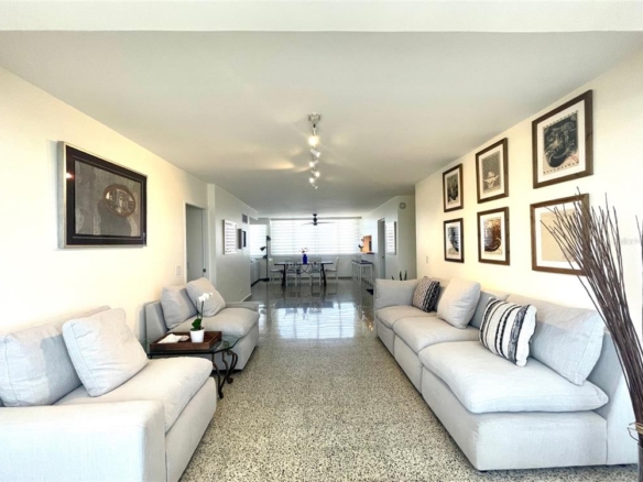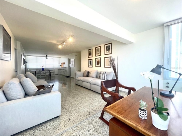 Located in the Condado Tower Condominium, just one block from the beach at the corner of Ashford Avenue and Washington Street, this fully remodeled, turnkey apartment offers elegance, space, and convenience. Spanning approx. 1,441 sq. ft., this beautifully furnished residence features three spacious bedrooms, two full bathrooms, and family room. The modern kitchen is equipped with wood countertops and premium appliances, perfect for culinary enthusiasts.