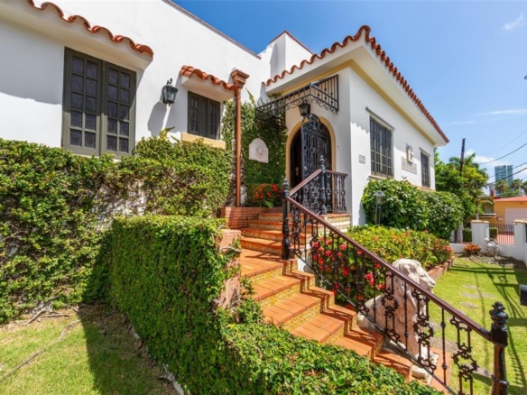 Located on one of the most charming and quiet residential streets in historic Miramar, this fully remodeled Spanish Colonial home offers timeless elegance with modern comfort. Sitting on a corner lot, the two-level residence spans approximately 4,500 square feet and features six bedrooms and four and a half bathrooms. Thoughtful renovations include a redesigned kitchen with high-end appliances and custom wood cabinetry, updated bathrooms, new floors, windows, and roof. Original architectural elements such as arched wrought-iron doors and terracotta tile details have been carefully preserved to honor the home’s heritage.