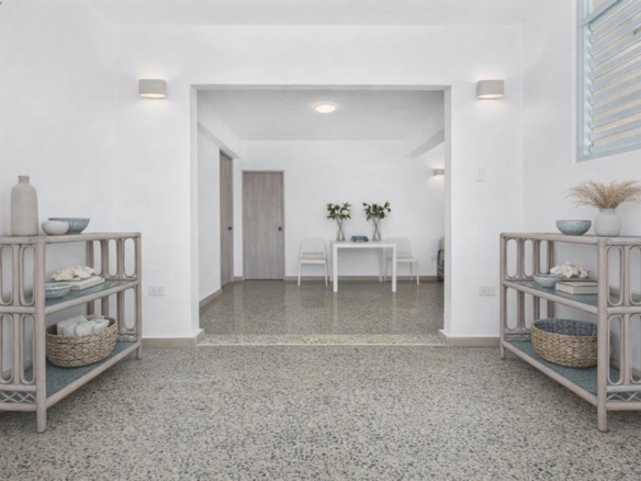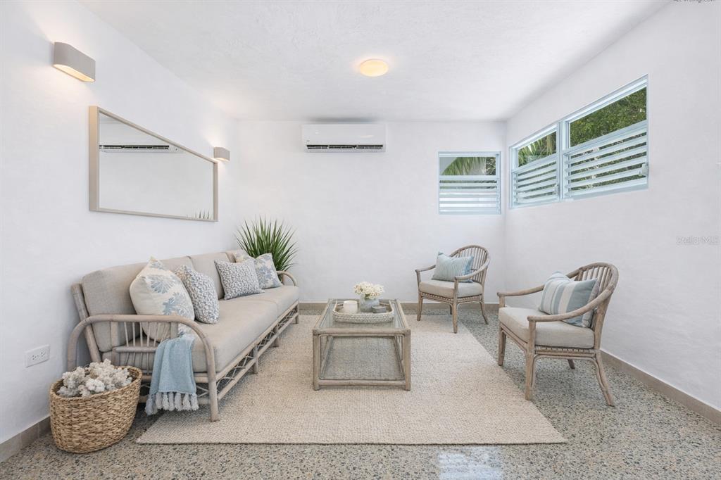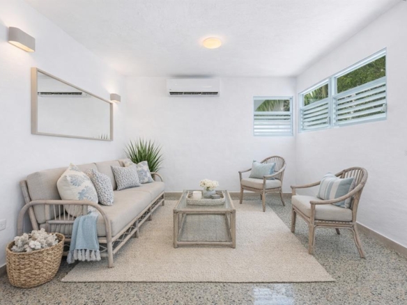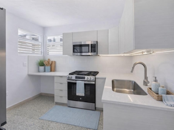 One or more photo(s) has been virtually staged. This ground-floor turnkey residence offers 2 bedrooms and 2 bathrooms with 819 sq ft. The unit includes a private parking space conveniently located directly adjacent to the residence. Inside you’ll find beautiful terrazzo floors, a brand new custom kitchen with quartz countertops, all new stainless steel appliances, and in-unit washer and dryer! The apartment includes a water cistern along with the wiring and space for your own personal generator.